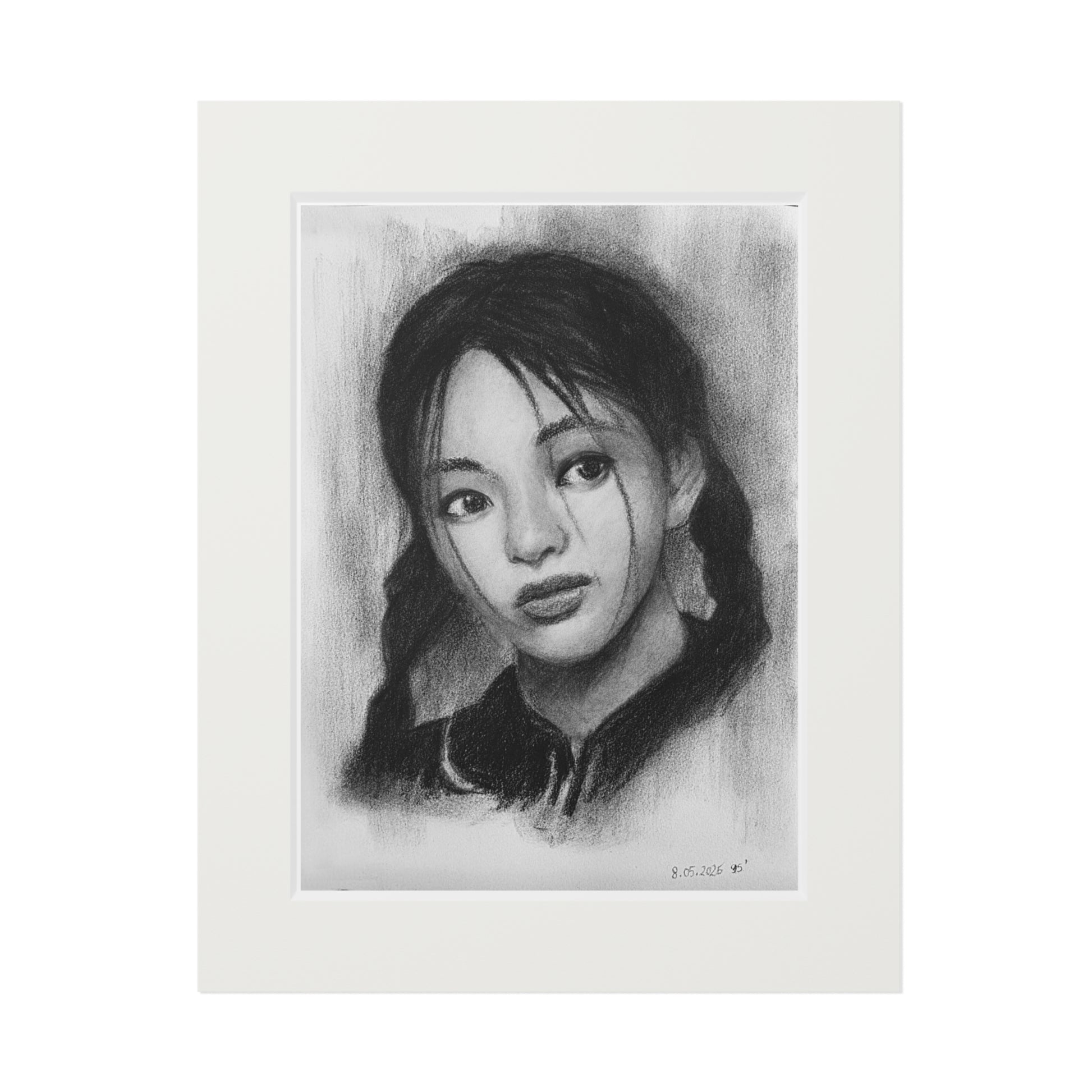 Fine art print of my charcoal portrait of Hyein from New Jeans. Kpop Fanart.