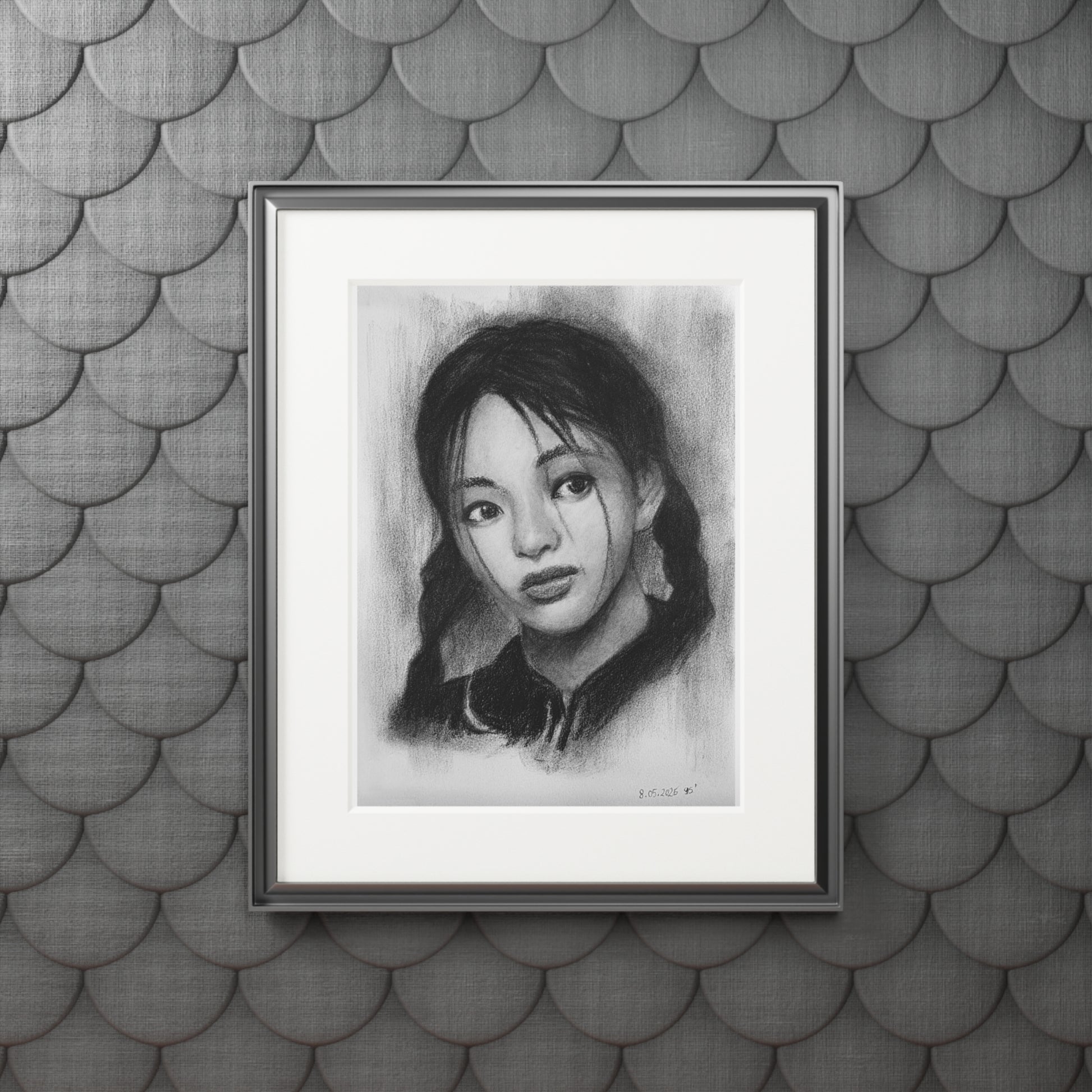 New Jeans Hyein Charcoal Portrait -  Framed Fine Art Print